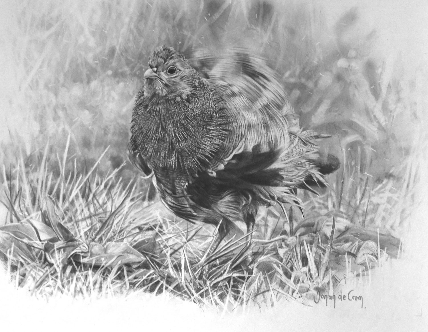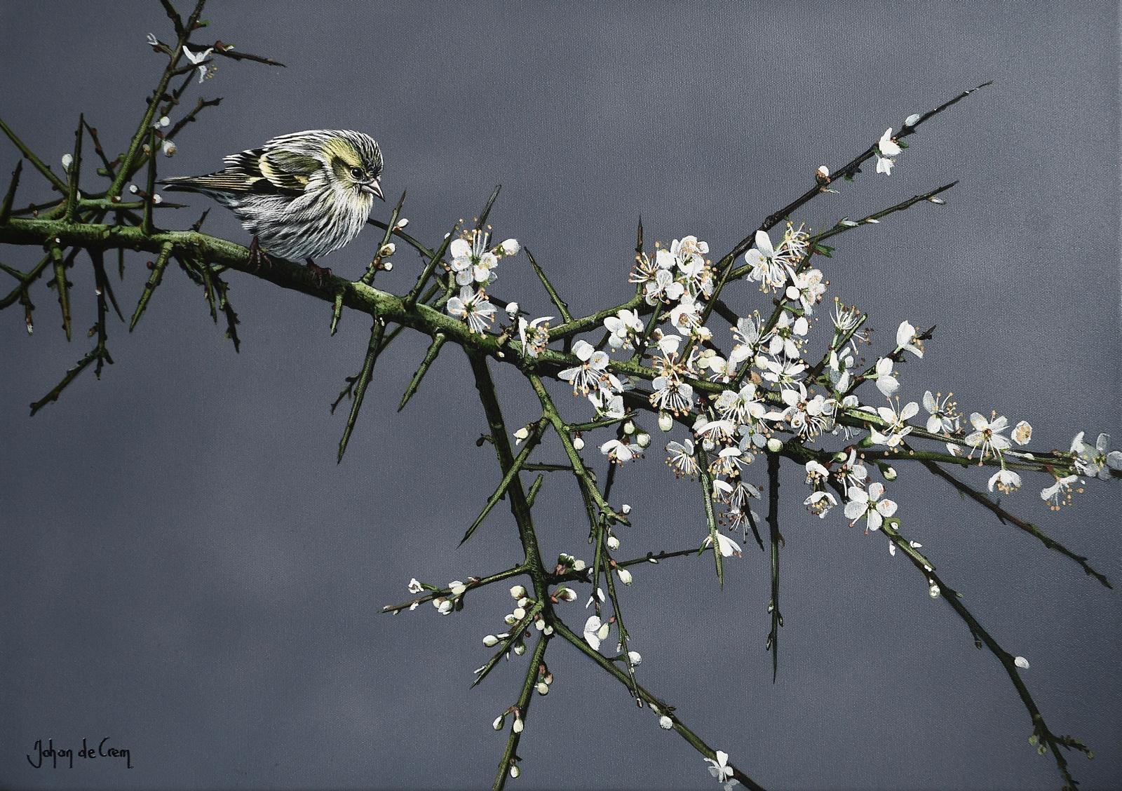 Le travail de Johan de Crem est l’aboutissement de quarante ans de passion pour les oiseaux. Ornithologue, le fait de peindre les oiseaux est pour lui une chose naturelle. De la puce à l’éléphant, en passant par les fleurs, tout ce qui touche à la nature l’interpelle et chaque tableau est une observation de terrain. La technique réaliste qu’il exerce ne permet pas l’erreur scientifique. Le croquis de terrain, la photographie, la video et tout autre apport médiatique lui sont dès lors utiles. Johan n’enjolive pas, il essaie de peindre la nature telle qu’elle est, avec ses côtés étonnants et dramatiques… mais toujours passionnants.